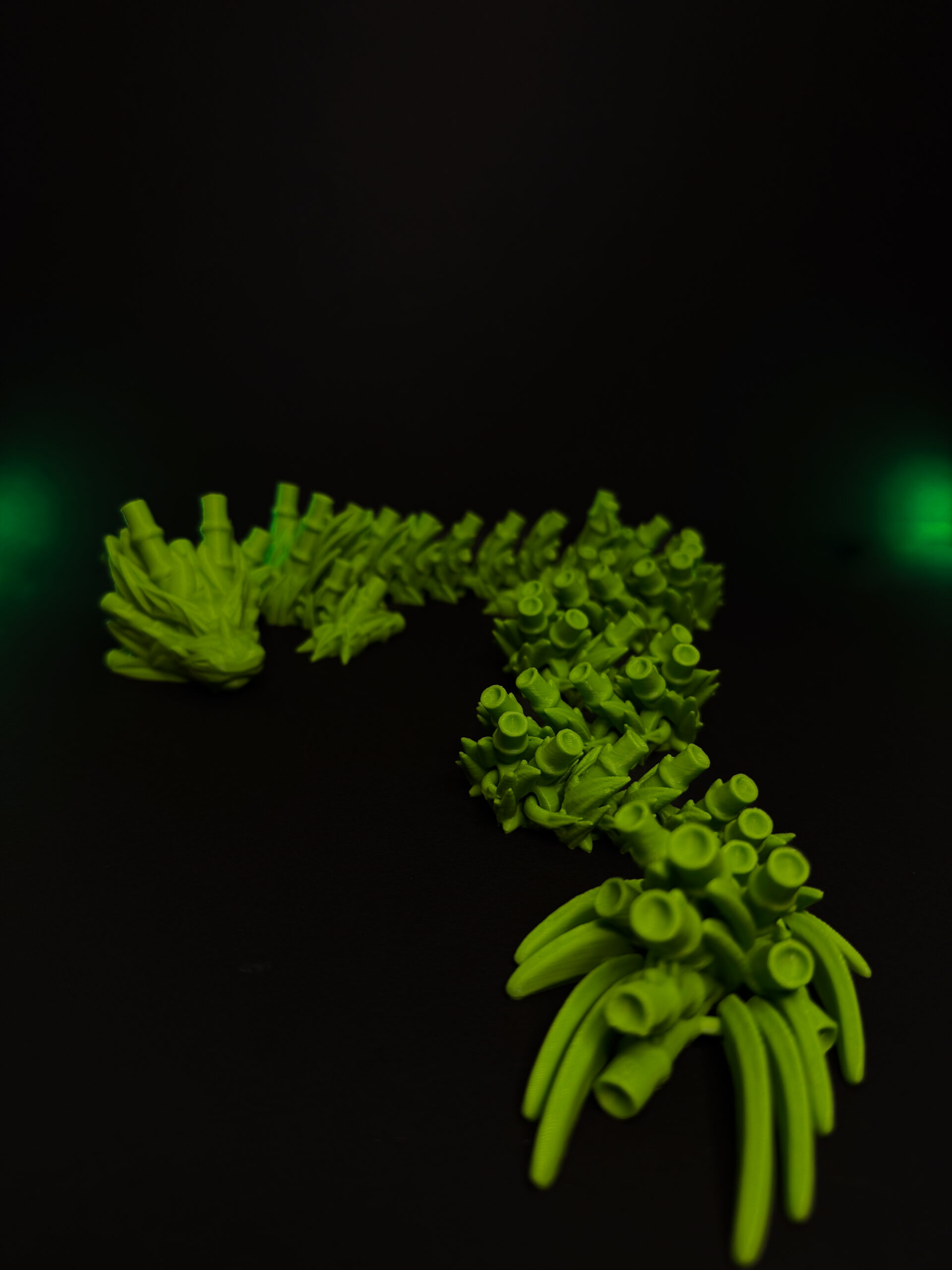 Smok Bambusowy – Szmaragdowy Wędrowiec 🐉🎍 to imponująca, 70-centymetrowa ruchoma figurka inspirowana naturą. Jego ciało pokrywają bambusowe pędy i liście, a ogon delikatnie grzechocze przy ruchu. Drukowany ekologicznie, pełen detali – idealny dla kolekcjonerów i fanów smoków! 💚✨