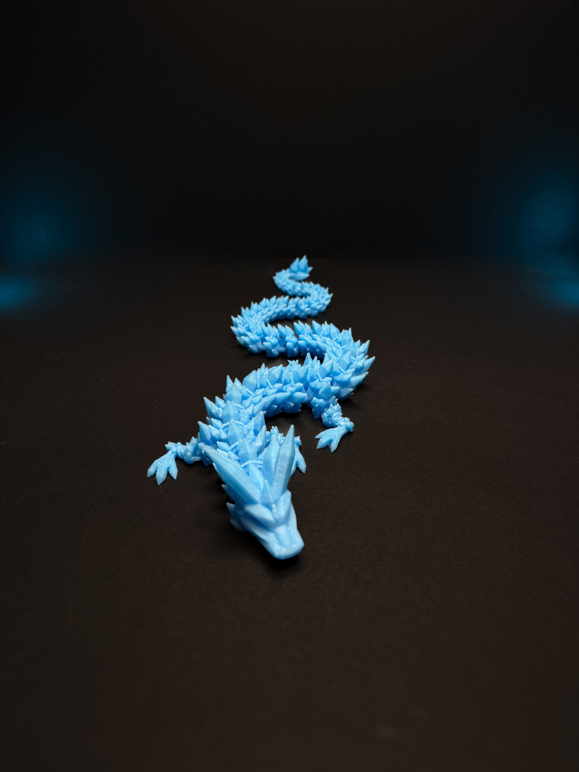 🔹 Krystaliczna struktura – geometryczna, fasetowana forma sprawia, że smok wygląda jak wykuty z magicznego kryształu. Jego powierzchnia pięknie odbija światło, a w ciemności lśni niczym pradawny artefakt.